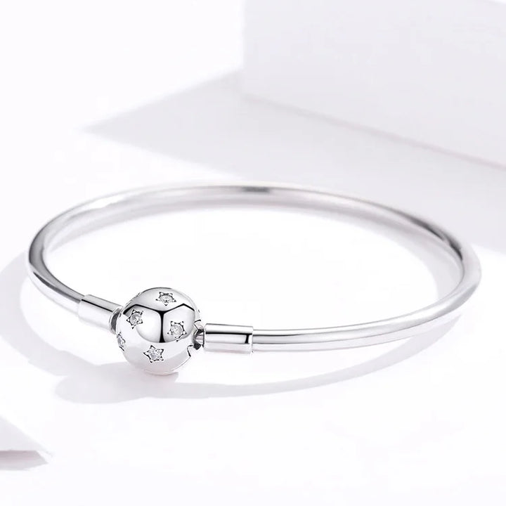 This charm bangle has a clean, elegant and modern look. It's made from sterling silver.Worn individually or stacked, silver bangles are fashion staples that never go out of style. Transform the bangle from daytime to evening wear by adding your favorite sparkling charms.